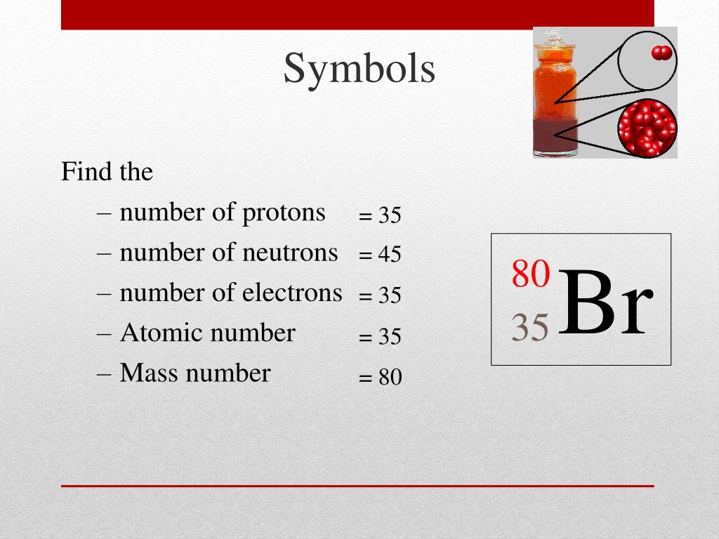 How many protons, neutrons and electrons does helium have? We know that the mass number (a) = number of protons + the number of neutrons, and. Halogens, like bromine, also tend.