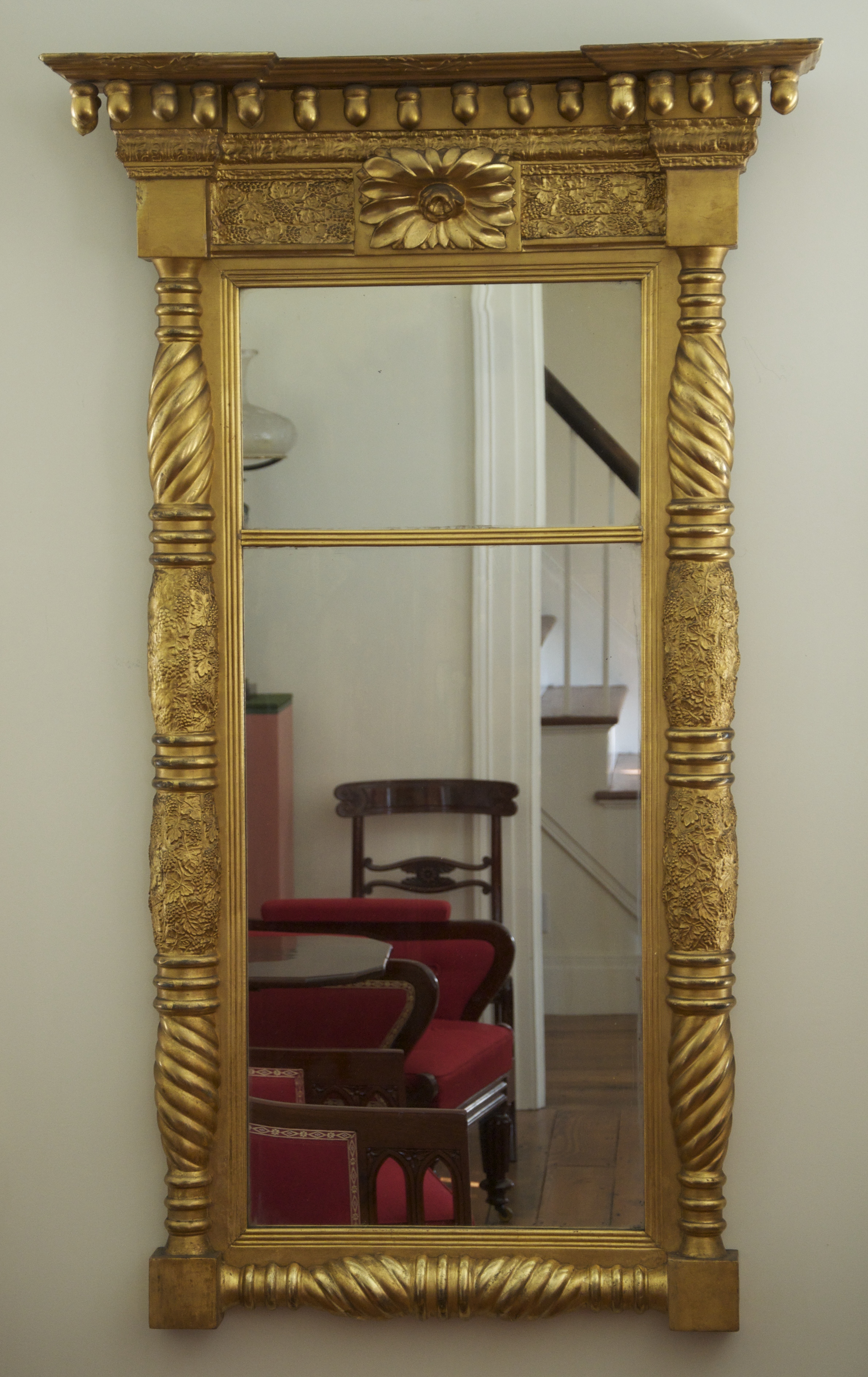What does pier mirror mean? Pier mirrors flanking the door from the parlor to the entrance. Gilt, gesso, wood with mirrored glass.